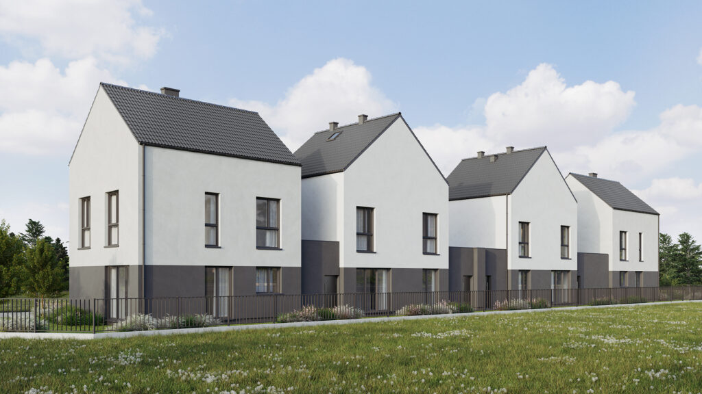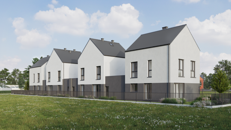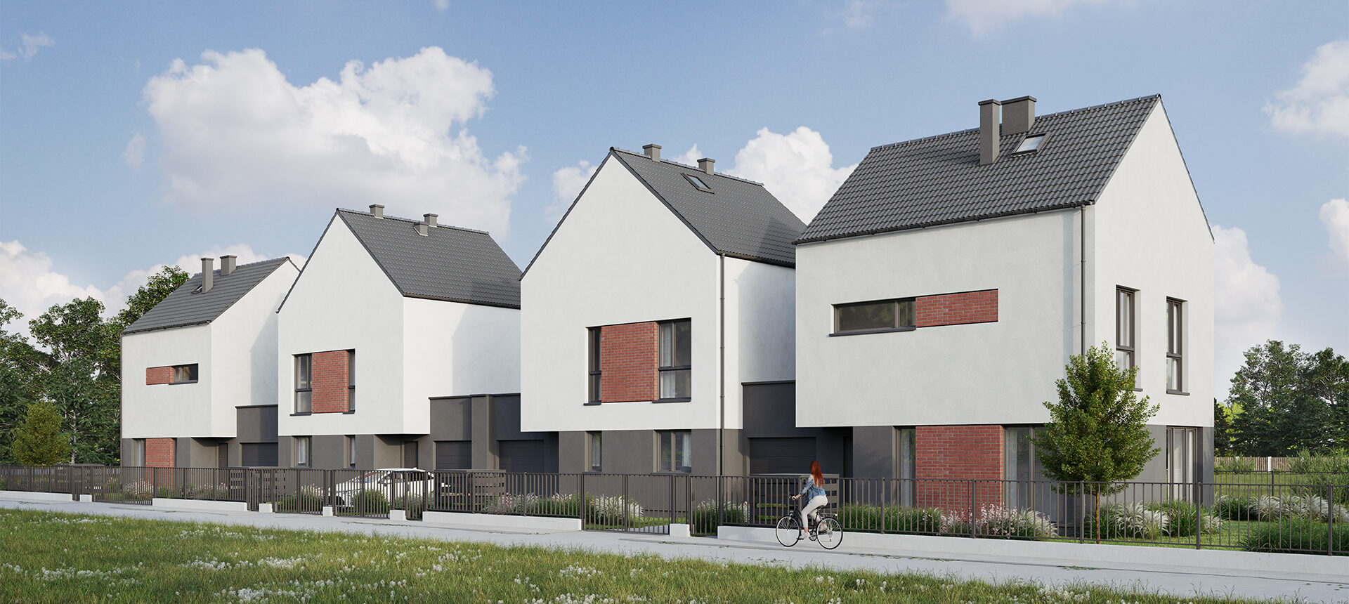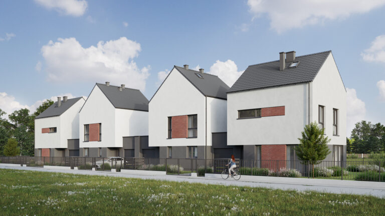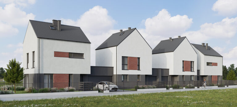 Avalon Kampinos to kameralna inwestycja, która wyróżnia się elegancką architekturą, łącząc nowoczesne rozwiązania z klasycznymi elementami. Projekt składa się z czterech domów połączonych garażami, co tworzy spójny, estetyczny wygląd całej zabudowy. Każdy dom zaprojektowano z dbałością o szczegóły, wykorzystując m.in. tynk silikatowo-silikonowy oraz cegłę klinkierową, która nadaje elewacjom wyjątkowy charakter. Teren inwestycji jest zamknięty, gwarantując mieszkańcom poczucie bezpieczeństwa i prywatności.